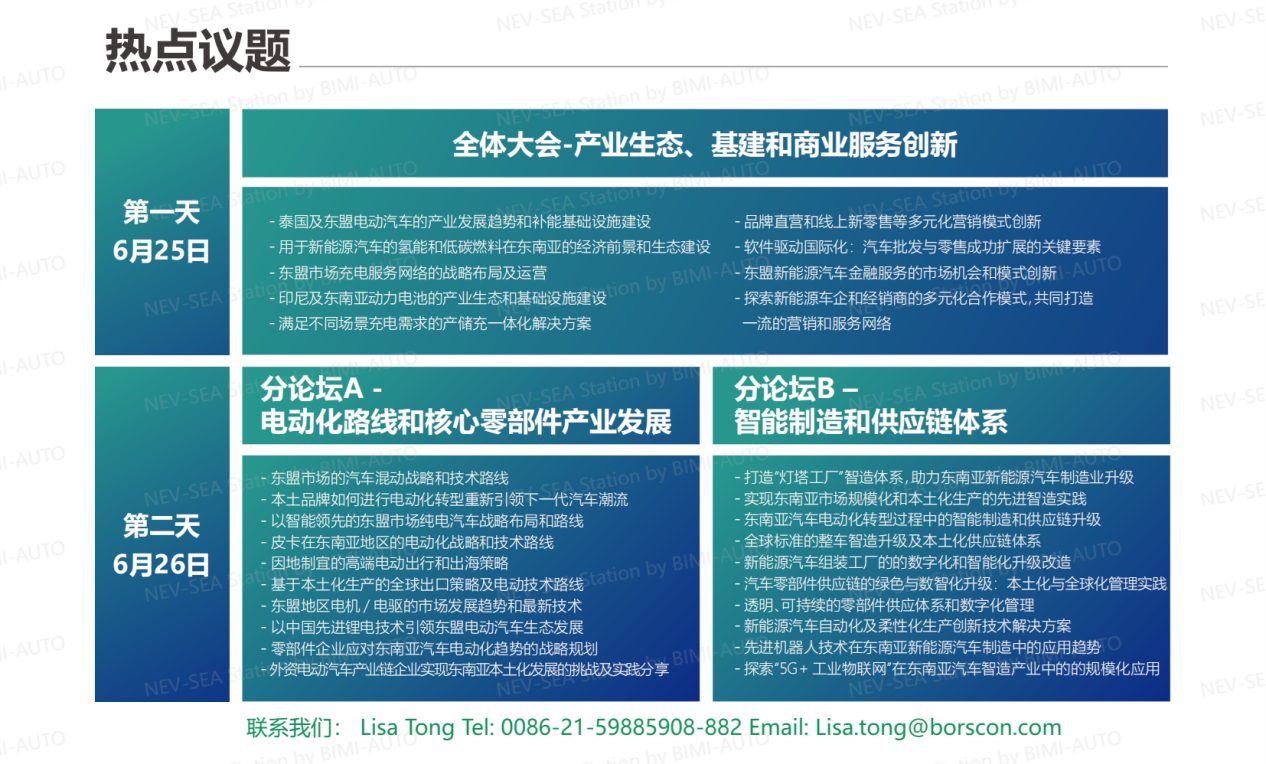 The train of the (NEV-SEA) International NEV Summit - Southeast Asia Station has set sail. Let us embarking on overseas ventures to seek the second growth curve and explore the Southeast Asian market together, If you are interested in participating in the search for overseas markets for NEV or in product technology promotion and advertising, please feel free to contact us!