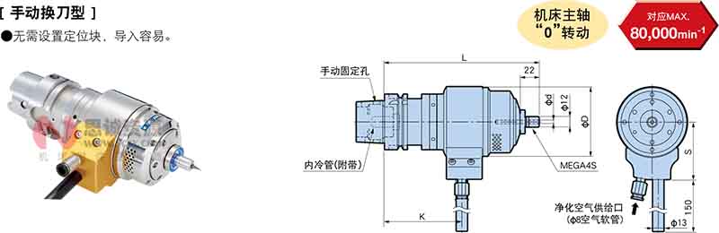 | HSK-A100-RBX7-4S-180-80 | 60,000 ~ 80,000 | φ1.0mm 以下 | 8.4 |