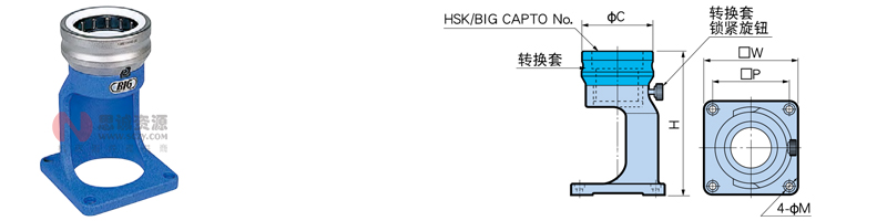 | 型號 | HSK No. | BIG CAPTO No. | φC | H | □ W | □ P | φM | 轉(zhuǎn)換套型號 |