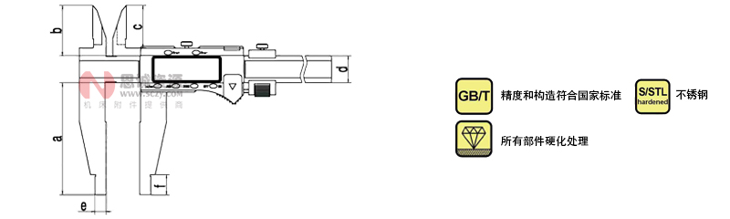 | 貨號 NO. | 測量范圍 (mm) | 精度 (mm) | a (mm) | b (mm) | c (mm) | d (mm) | e (mm) | f (mm) |