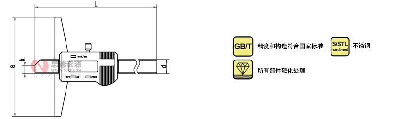 | 貨號(hào) NO. | 測量范圍(mm) | 精度(mm) | L(mm) | a mm | b mm | d mm |