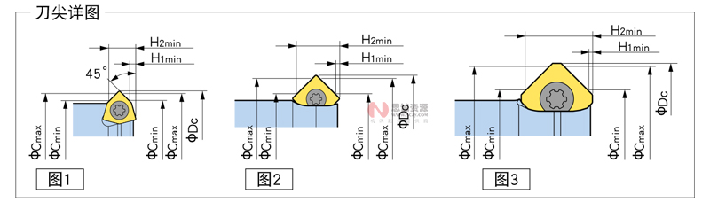 | 型號 | 圖 | φDc | φDs | φD1 | φD3 | L | L1 | φC1min | φC2min | φCmax | H1min | H2min | 偏置量 F | 刀片 型號 | |