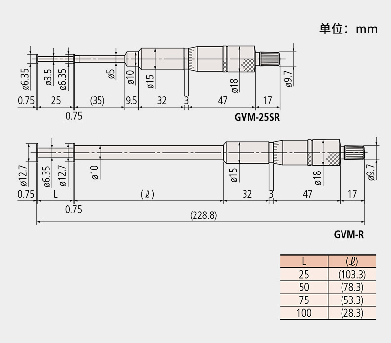 Mitutoyo三豐測微螺桿直徑為8mm的中型標準