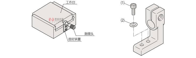 | 測微頭 | 固定裝置 (貨號) | 安裝孔尺寸 |
