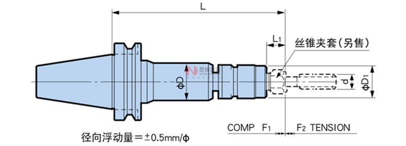 徑方向有±0.5mm的浮動量,不僅可防止因?yàn)榈卓灼亩鴮?dǎo)致的絲錐折斷事故,也可提高攻絲精度。