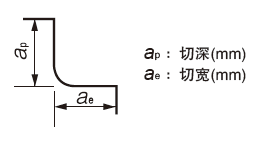 | 型號 | 外徑 (mm) | 圓角半徑 (mm) | 有效長 (mm) | 轉速 (min-1) | 進給 (mm/min) | ap (mm) | ae (mm) | 轉速 (min-1) | 進給 (mm/min) | ap (mm) | ae (mm) | 轉速 (min-1) | 進給 (mm/min) | ap (mm) | ae (mm) |