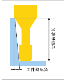 | 型號 | 外徑 φD | 圓角半徑 CR | 有效長 R1 | 刃長 R | 首徑 φd1 | 柄錐角度 Bta | 全長 L | 柄徑 φd | 工件勾配角對應的實際有效長 | ||||