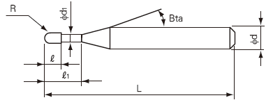 | 型號 | 球半徑 R | 刃長 R | 有效長 R1 | 柄錐角度 Bta | 全長 L | 柄徑 φd |