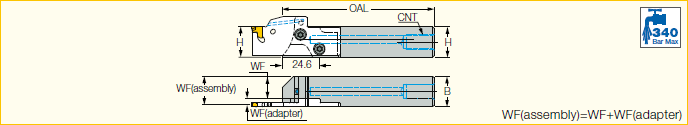 切斷、切槽刀夾,夾持TANG-GRIP刀片,帶高壓冷卻通道
