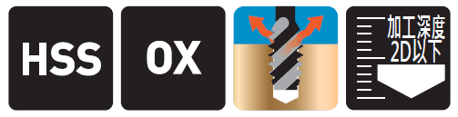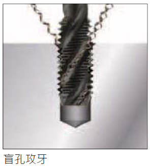 *螺旋溝,切屑從后面排出(與絲攻前進(jìn)的方向相反),請(qǐng)使用在盲孔螺紋的加工上。