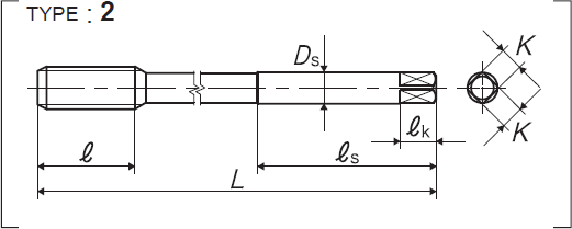 | 全長 | 吃入部+完全螺紋部的長度 | 螺紋部長 | 頸下長 | 柄部長 | 柄徑 | 四角部寬 | 四角部長 |