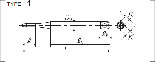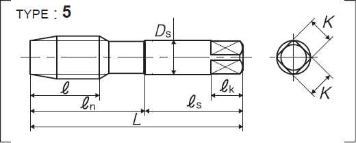 | 全長 | 螺紋部長 | 頸下長 | 柄部長 | 柄徑 | 四角部寬 | 四角部長 |