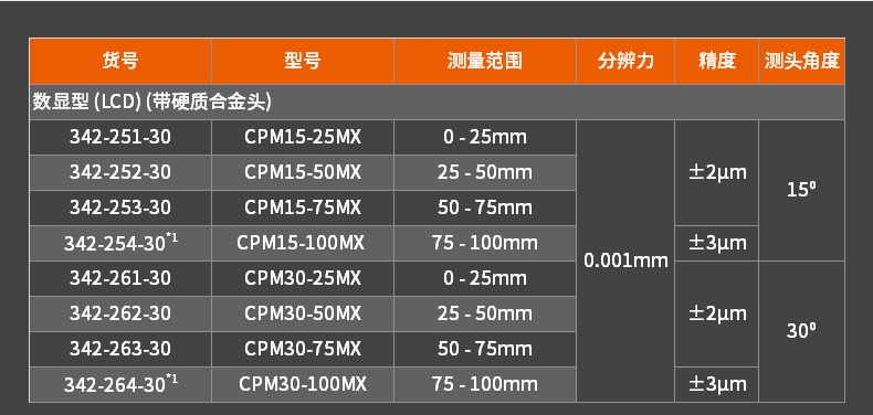 | 342-251-30/0-25mm/0.001mm/±2μm | 0.002 | 硬質(zhì)合金 | 0.0001 | 0-25 | 0.6KG | 加購詢價(jià) |