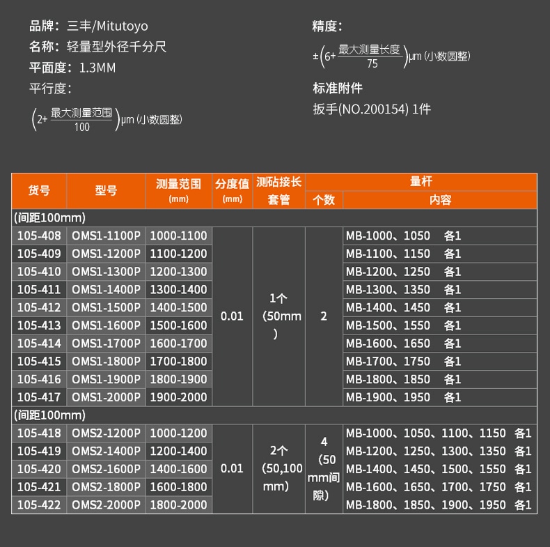 | 105-408/1000-1100mm/0.01mm | 測(cè)微螺桿進(jìn)給誤差±0.006 | 硬質(zhì)合金 | 1000-1100 | 0.01 | 加購詢價(jià) |