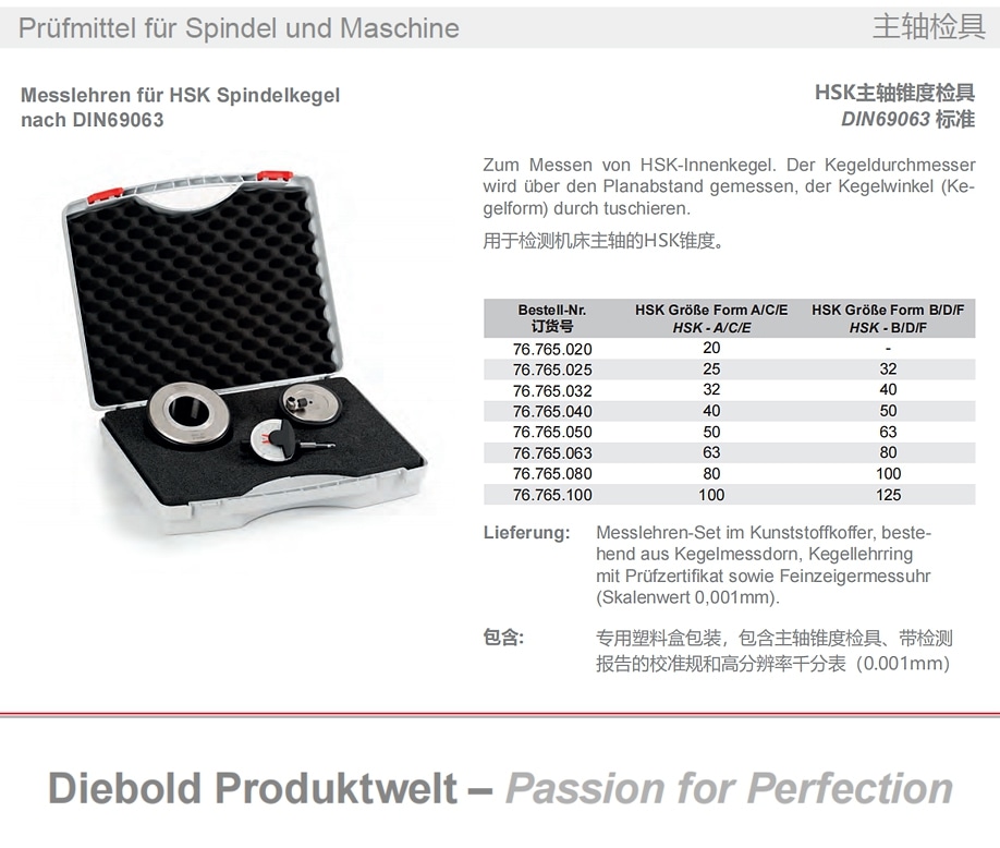 思誠資源為您提供:Diebold戴博 HSK主軸錐度檢具 DIN69063標(biāo)準(zhǔn)主軸檢具的采購報價、Diebold(戴博)Gauges for Inspection of HSK Spindle Tapers型號參數(shù)、規(guī)格圖片、PDF畫冊等資料,如您想了解更多關(guān)于Diebold(戴博)正品品牌的其他主軸檢具資料與產(chǎn)品貨期庫存、行情價格,就在思誠資源MRO商城。