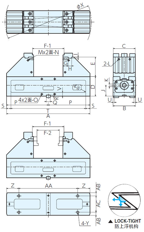 型號 | O(粗牙) | P | Q | R | S | T | U | V | W | X | Y(粗牙) | Z | AA | AB | AC |